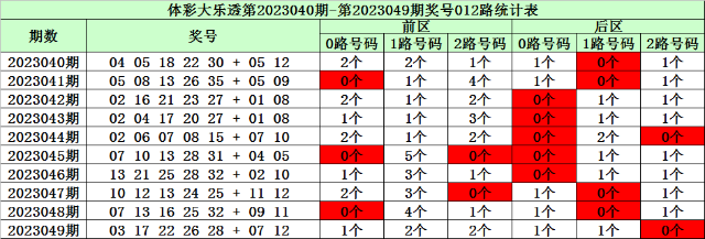 陈华大乐透第2023050期奖号012路分析: