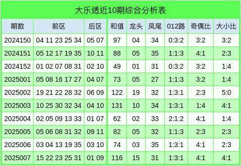 奇偶比分析:上期前区奖号奇偶比为4:1,奇数较热,在最近10期开奖中,前区奇偶个数比为30:20。本期需要关注偶数出号,奇偶比关注1:4。