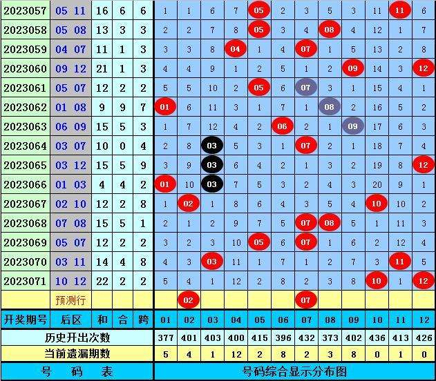 后区第二位推荐:在连续5期开奖中分别出号:10、08、07、11、12,均值为9。6,其中奇数奖号表现较冷,本期适当关注回补,参考奇数号码07。