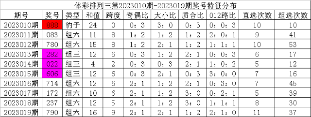 开奖公告:体彩排列三第2023019期开出奖号:790。组六,有重号:7,奇偶比2:1,大小比2:1,012比2:1:0,和值16,跨度9。