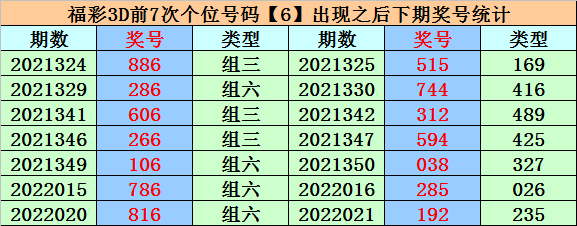 个位分析:上期个位开出奖号6,个位历史上号码6已开出671次,最近100期个位号码开出6次,上期号码遗漏7期出现。