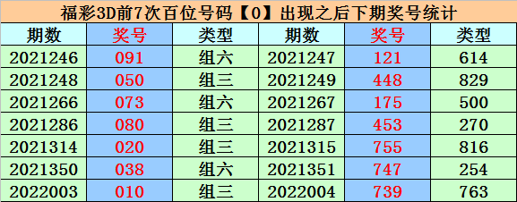 在百位号码0前7次开出之后,其下期分别开出号码:1、4、1、4、7、7、7,其中号码奇偶比为5:2,大小比为3:4,012路比为0:7:0。