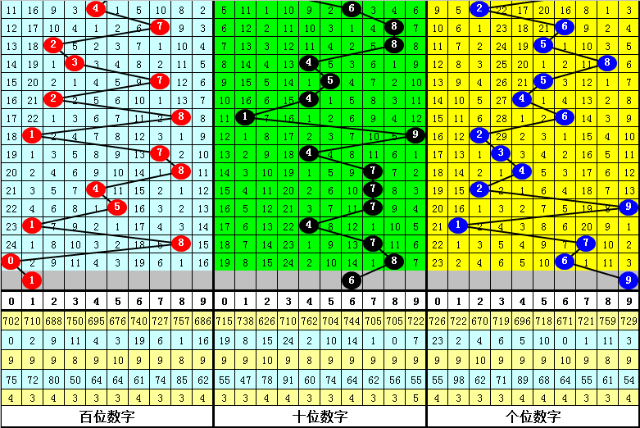 百位分析:百位上期开出号码0,历史上该位号码0出现了702次,最近100期号码0出现次,上期间隔24期再次出现。