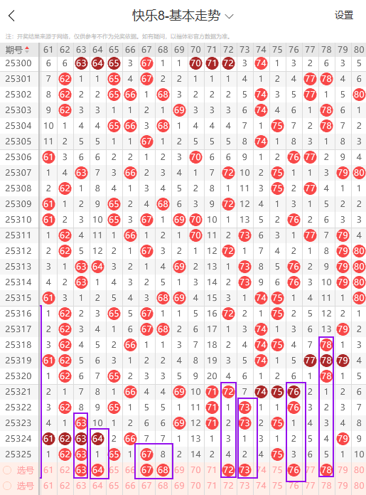 各位彩友粉丝朋友们大家好,我叫財星,是一名快8爱好者。本人擅长对快乐8的:遗漏走势分析大盘分析,抓胆及尾图定胆分析短期追号等等......个人比较喜欢玩选二,或选三复二这样比较稳定。最高战绩,连红过一个星期!每个月选二选三和复五,平均大概能命中13次左右。