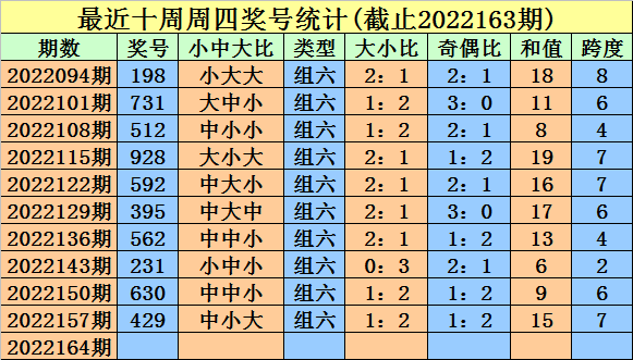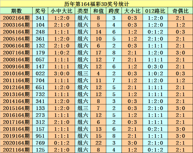 在历年同期开奖中,组三出现2次,组六开出18次,去年同期开出组六,今年同期看好组六再出。