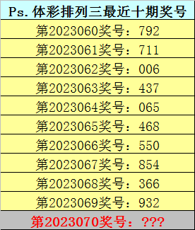 开奖回顾:体彩排列三第2023069期奖号为:932,类型:组六。