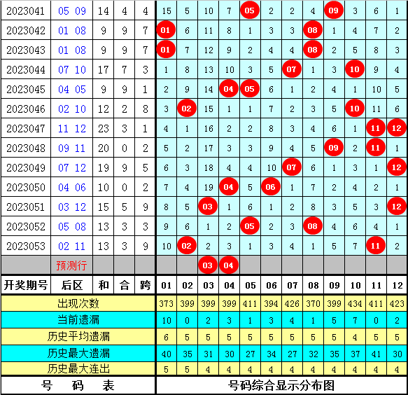 上期回顾:体彩大乐透第2023053期开出奖号01 03 11 14 20 + 02 11,其中前区奖号奇偶比为3:2,三区比为3:2:0,后区奖号奇偶比为1:1,大小比为1:1。
