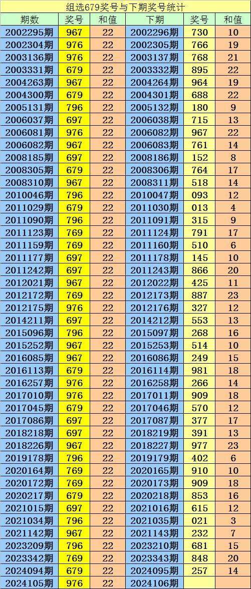 第2024105期3D奖号组选为:679,历史上该号码组选出现45次,下期号码分别为:730、766、768、895、964、688、180、715、967、761、152、764、518、093、013、315、791、510、145、866、425、887、327、553、268、514、249、981、266、909、570、377、391、977、402、910、909、853、615、021、232、681、848、257。