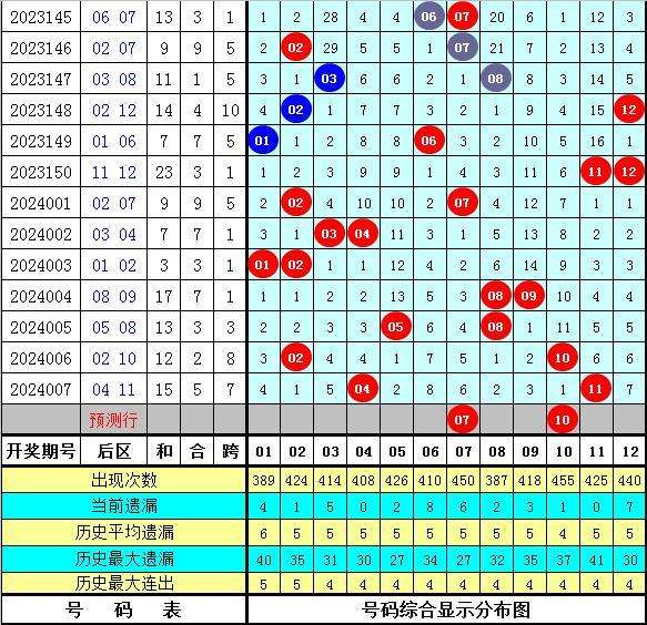 在历史同期奖号中,后区奖号跨度尾数大小比为7:10(定义:跨度1、2、3、10、11为小尾跨度,跨度4、5、6、7、8、9为大尾跨度),其中小尾跨度出现次数较高,本期重点关注小尾跨度再次出现,参考跨度3。