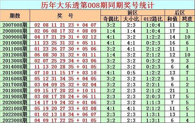 在历史同期开奖中,后区号码和值奇偶为11:6,其中奇号和值走势活跃,本期防奇号和值再次出现,关注和值17。