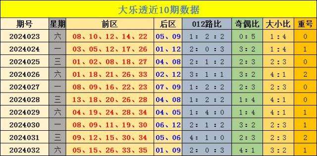 前区大小:上期前区大小比为3:2,前10期前区大小比为25:25,本期看好前区大小比3:2。