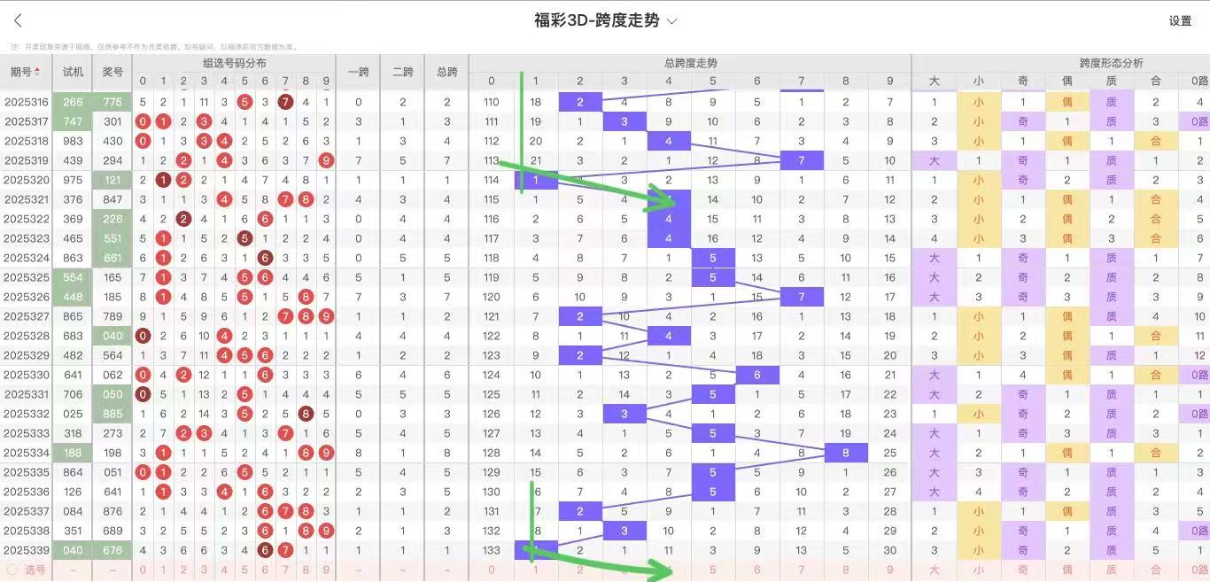 10期内跨度走势为:5-9-6-8-5-5-3-1-5-9,10期内大小跨比:8:2,奇偶跨比8:2,百期内跨度9共开出的8次,下期数据:6 7 5 5 5 1 6 近期度较热,考虑跨度9开出后容易出大跨度,近期大小规律下小:偶:合,所以接下来继续小跨,偶跨度表现!