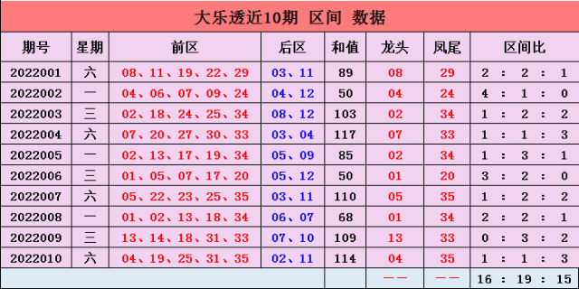 前二区(13-24):上期开出1个奖号:19,走势较温;最近10期二区的出号个数为2—1—2—1—3—2—2—2—3—1,二区出奖号总数为19个,落码总体高于平均值,本期推荐二区出现2个奖号:15、22。