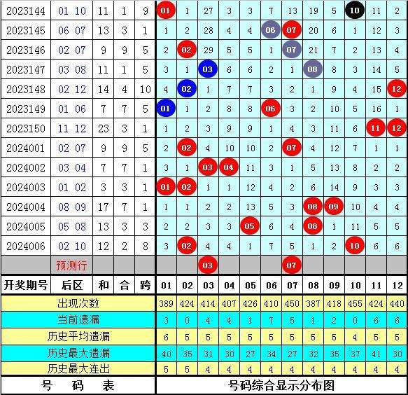 其中,号码奇偶比为57:43,大小比为51:49,012路比为36:35:29,本期前区龙头号码参考01。