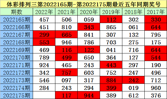 夏姐体彩排列三第2022175期奖号推荐: