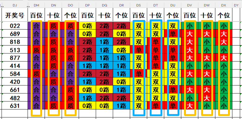 1,目前开奖号百位号码球11天当中,质数(12357)开出了2次,合数(04689)开出了9次,本期重点关注开奖号百位号码球质数的回补!