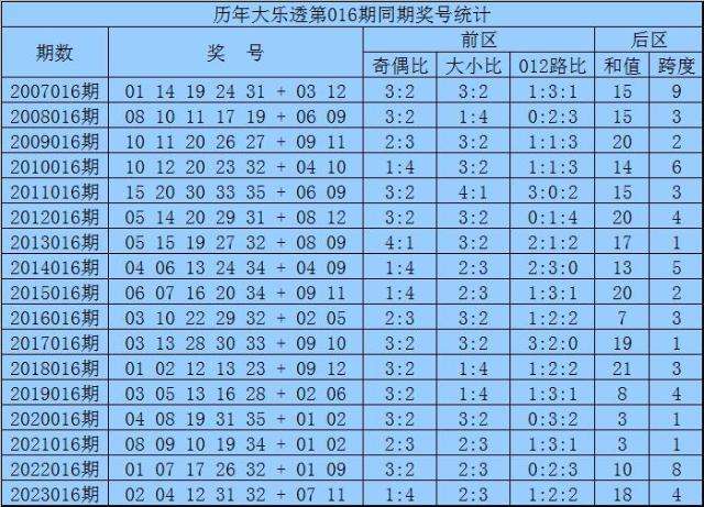 袁军师体彩大乐透第2024016期历史同期奖号分析: