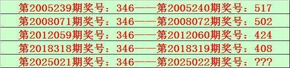 排列三第2025021期开出奖号346,该号码直选类型历史上出现了5次,前4次开出之后期下期奖号为:517、502、424、408,见下表: