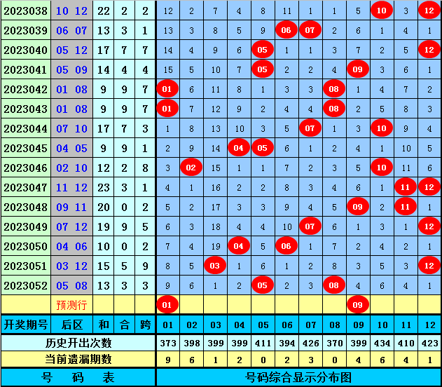 后区分析:上期后区两码开出05+08,为一大一小组合,近50期后区全大组合出现13次,全小组合出现11次,一大一小组合出现26次,,近10期后区全大组合出现4次,全小组合出现2次,一大一小组合出现4次,本期预计后区一大一小组合再出,参考号码01、09。