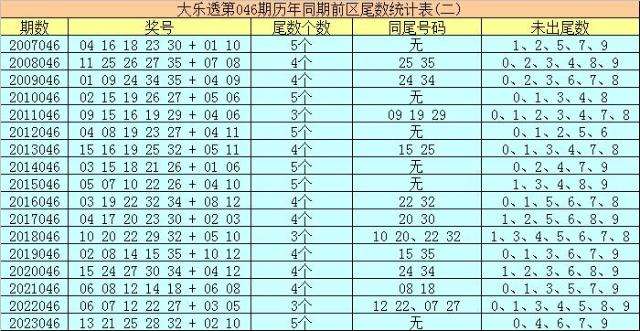 历史上大乐透第046期开出17次奖号,本期第2024046开奖: