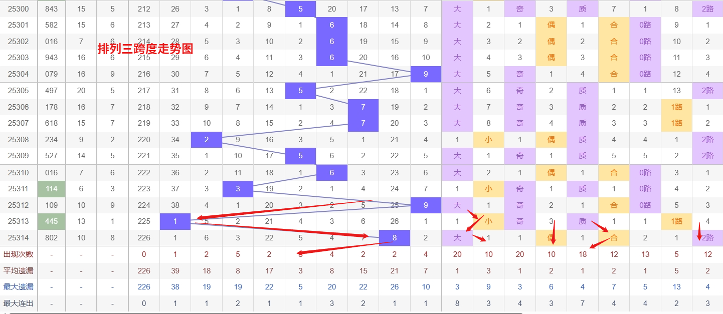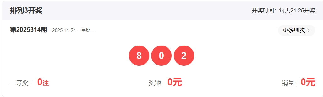 排列三第2025314期开奖回顾:开奖号码:802 形态:组六