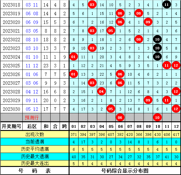 5、后区分析:上期后区奖号为:05和12,开出小大组合和奇偶组合,本期看好大小号持平,预计偶数走热,参考两码06、10。