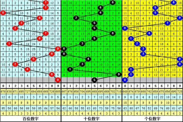 3、在以上0-9号码频次中,号码奇偶比为27:34,大小比为28:33,本期预计百位开出大号,参考号码9。