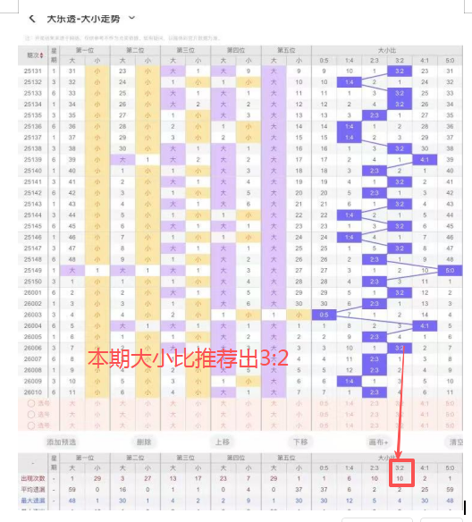 5、大小比:上期开出大小比为2:3,斤105期开出4:1出现22次,3:2出现46次,2:3出现46次,1:4出现29次,5:0出现4次,本期推荐出3:2 。