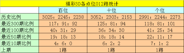 个位分析:该位最近10期开出了7个0路号码、1个1路号码、2个2路号码,0路号码热出,1路号码走冷。本期排除1路号码,参考号码:9。