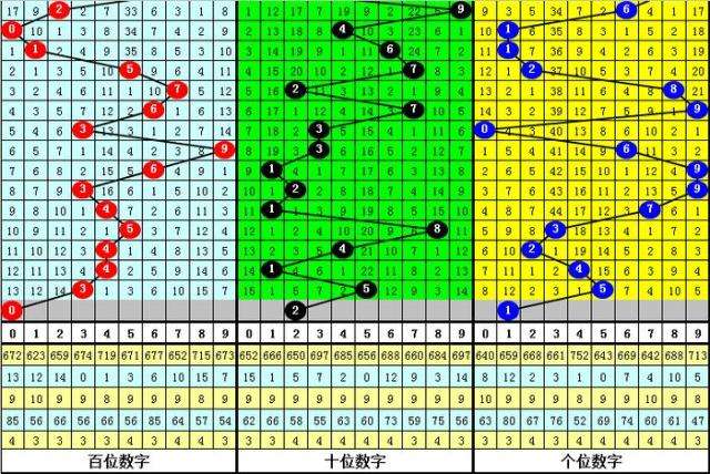 012路分析:最近10周星期六奖号012路总比例为17:10:3,012路号码轮空期数比为1:2:7,上周星期六奖号012路比为2:1:0,本周星期六预计012路号码平衡,参考012路比1:1:1。
