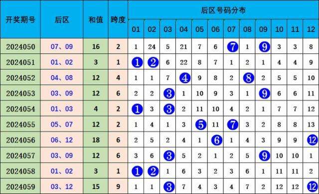 上期后区号码为03号和12号,为小大奇偶组合,近10期后区号码大小总比值8:12,近10期后区号码奇偶总比值13:7,奇数号码走势较热,本期预计奇偶组合,后区两码关注05 10。