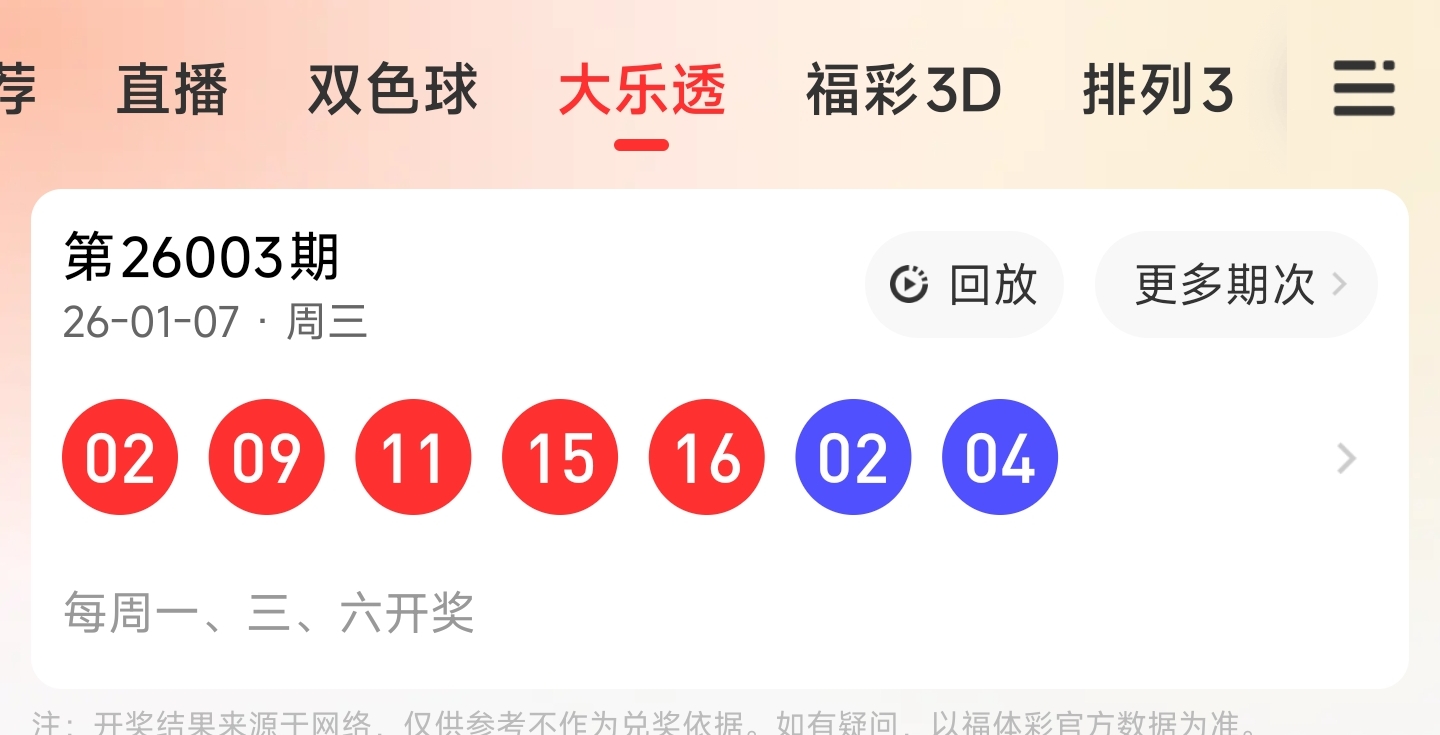 第26003期大乐透文章推荐中命中2,9,16等3个红球,蓝球4。
