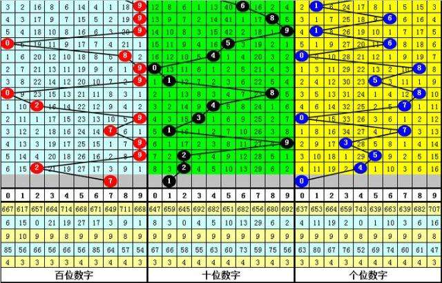 百位分析:该位上期开出号码2,最近10期该位012路比为6:1:3,其中2路号码间隔4期再次出现,本期可以放弃2路号码,注意1路号码开出,参考7。