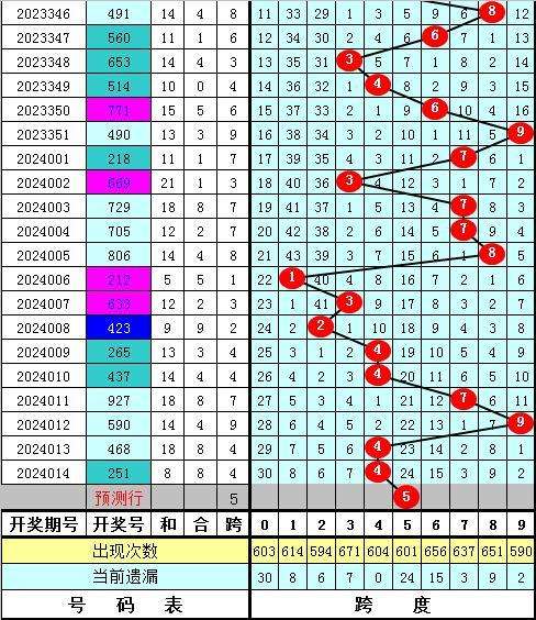 福彩3D第2024014期最大跨度开出4,近期最大跨度波动较大,本期预计最大跨度在3-7区段出现,最大跨度关注34567,精选跨度5。