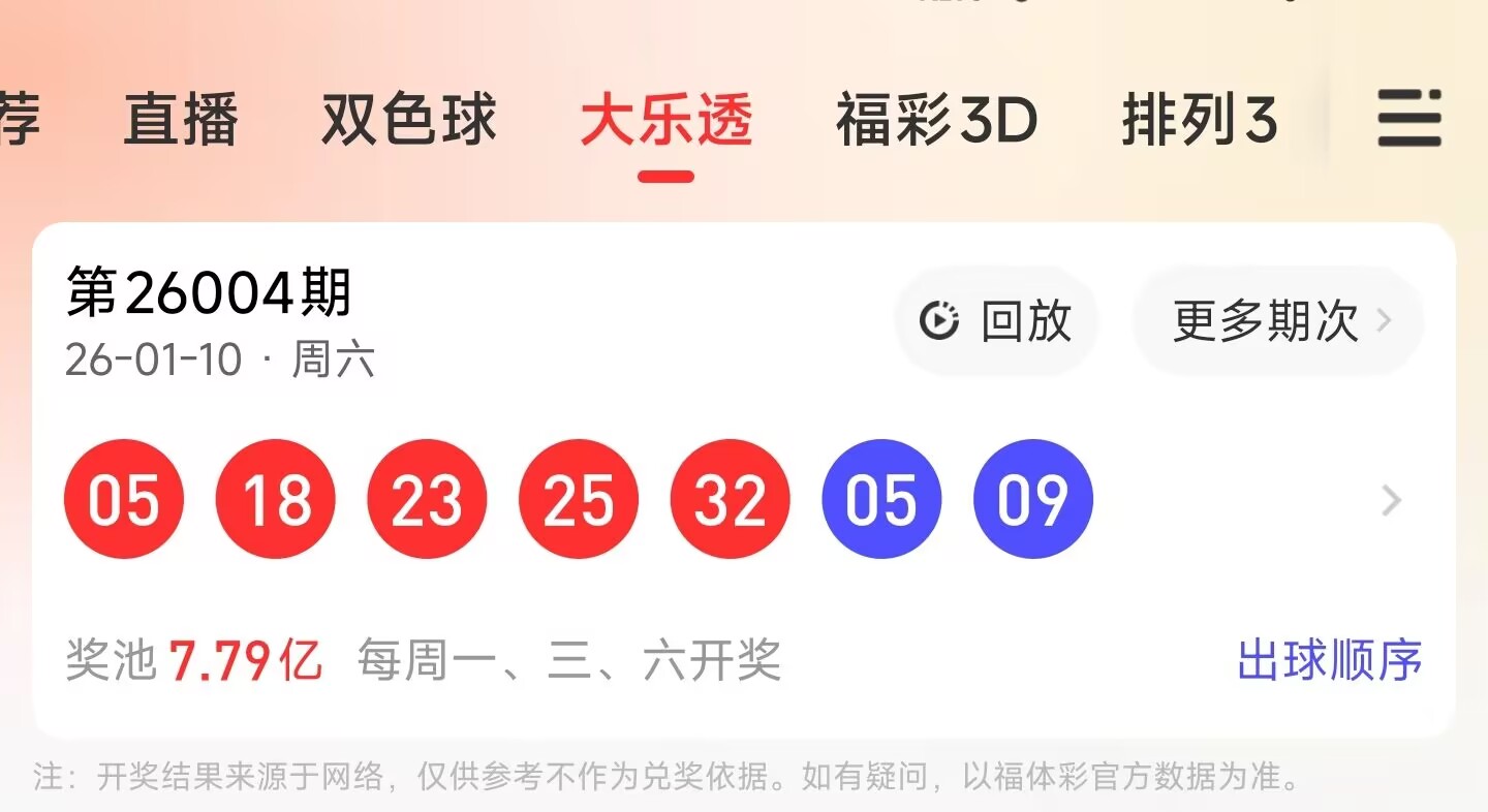 第26004期大乐透文章推荐中命中5,18,32等3个红球,蓝球9。
