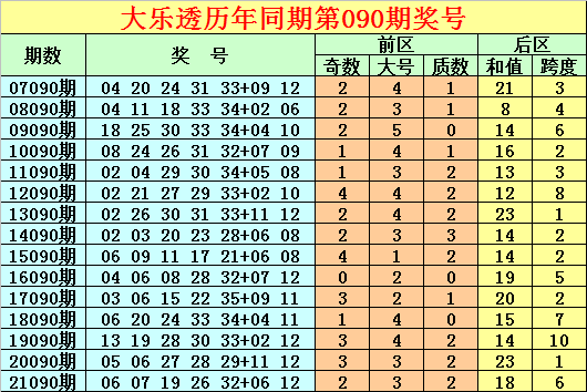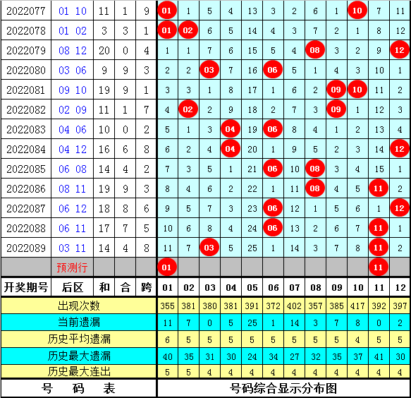 后区跨度分析:在历史同期开奖中,后区跨度奇偶比为6:9,其中偶数跨度明显较热,本期看好偶数跨度再次出现,关注跨度10。