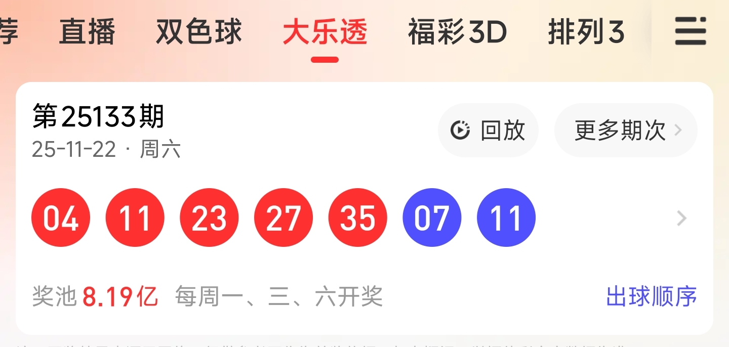 第25125期大乐透文章推荐中命中10,19,35等3个红球,蓝球11。红蓝5胆命中4胆。