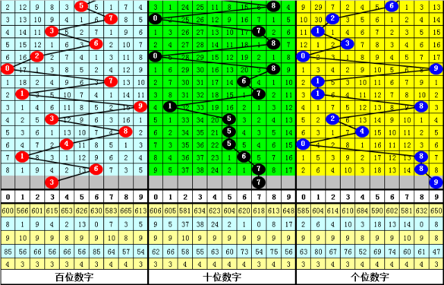 百位分析:该位上期开出号码6,最近10期该位012路比为4:4:2,其中0路号码间隔3期再次出现,本期该位防0路号码再次出现,参考号码3。