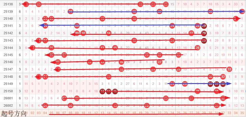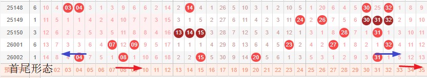 如图所示:首尾制约平衡组范围依次为:推缩推,拉推? 本期形态范围优先选择红色右首尾。由于上期号码处在首尾换4然后中间右推本期交换首尾移动空间连续分割形成间隔1正在重复走势预计本期继续形成走势,本期宜采取继续右推走势常规起号,或体现0连号组和重号走势。