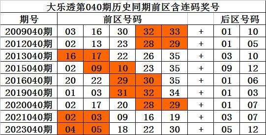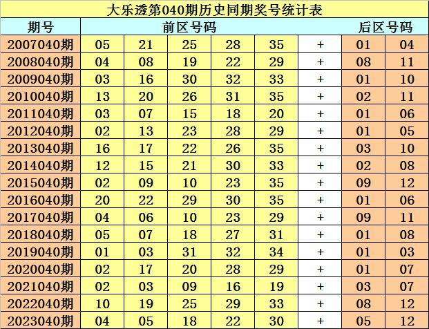 大乐透第2024040期历史同期推荐: