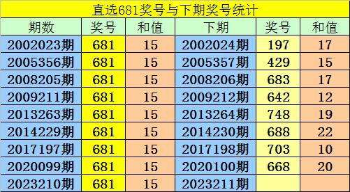 第2023210期3D奖号为:681,历史上该号码直选开出9次,下期号码分别为:197、429、683、642、748、688、703、668。