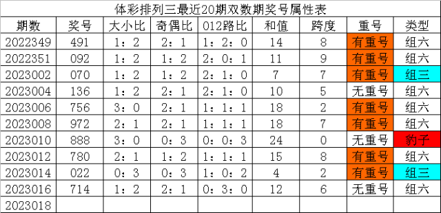 体彩排列三第2023018期发哥观点: