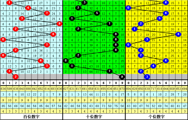 其中,号码0-9开出次数分别为:号码0开出2次、1开出2次、2开出2次、3开出5次、4开出2次、5开出2次、6开出2次、7开出3次、8开出4次、9开出6次。