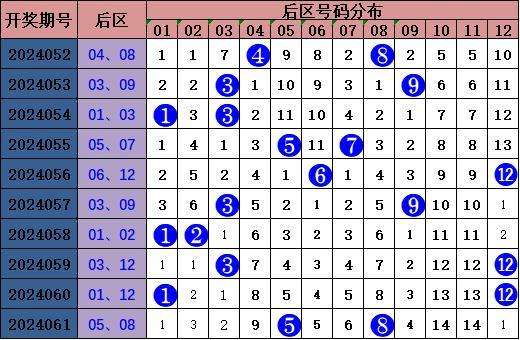 上期回顾:大乐透2024061期开奖,本期奖号:前区01、12、19、31、33后区05、08,和值96,区间比2:1:3,奇偶比4:1。