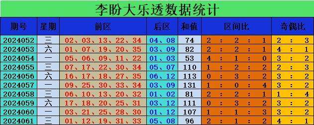 062期李盼大乐透预测奖号:区间比奇偶比和值