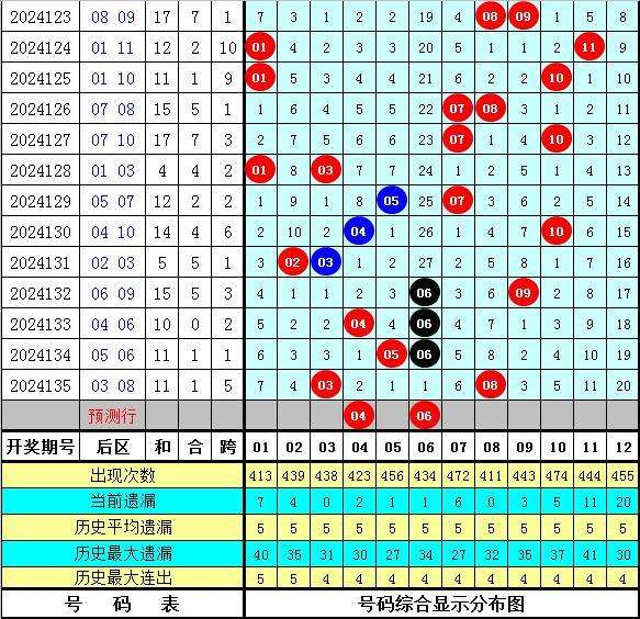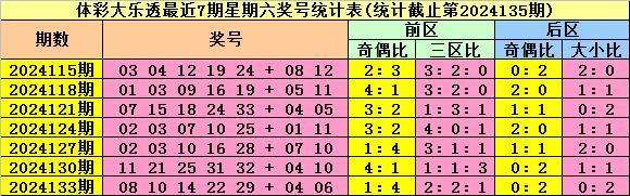 上期回顾:体彩大乐透第2024135期开出奖号06 08 22 24 30 + 03 08,其中前区奖号奇偶比为0:5,三区比为2:2:1,后区奖号奇偶比为1:1,大小比为1:1。