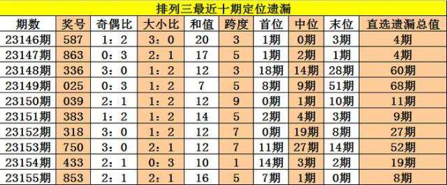开奖回顾:排列三第2023155期奖号:853,定位直选遗漏值7期、1期、0期,遗漏总值为8期。