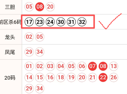 既然上期出现了3连号的情况,那么接下来出重号的概率在我来看就很大了,所以选了和上期重号的胆配了一个05。还有另一个思路就是把上期出的号码和上期的邻号全去掉去选号。