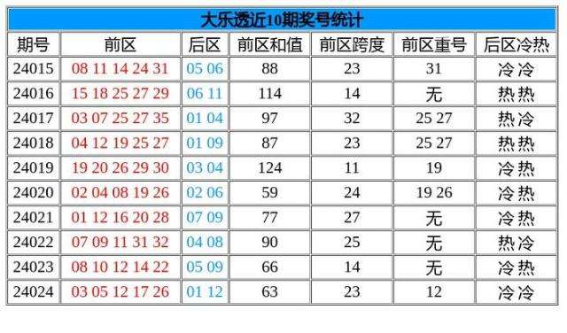 跨度分析:上期前区跨度为23,大跨度遗漏1期开出,本期防小跨度遗漏1期现身,关注跨度19。