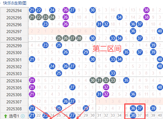 上期二区开出6个奖号(21.25.29.36.37.39.)上期回顾二区开出6个奖号二区间在上期落位同比前期的话呈现了一个递增的落位趋势,先来看本期号码23整体活跃度较一般,在近 30 期里有一定的间歇性出现,不是每期都开,整体走势还不是很稳定。号码27近期热度较好,间隔性也是较好,说明其在当前阶段活跃度较热注意防守。号码36近期活跃度较稳定,有一定的间歇性近期整体走势相对平稳有特别明显的冷热趋势变化,号码38近30期内活跃度较冷,没有明显的连续出现形态走势,整体表现比较动荡不是很稳定。